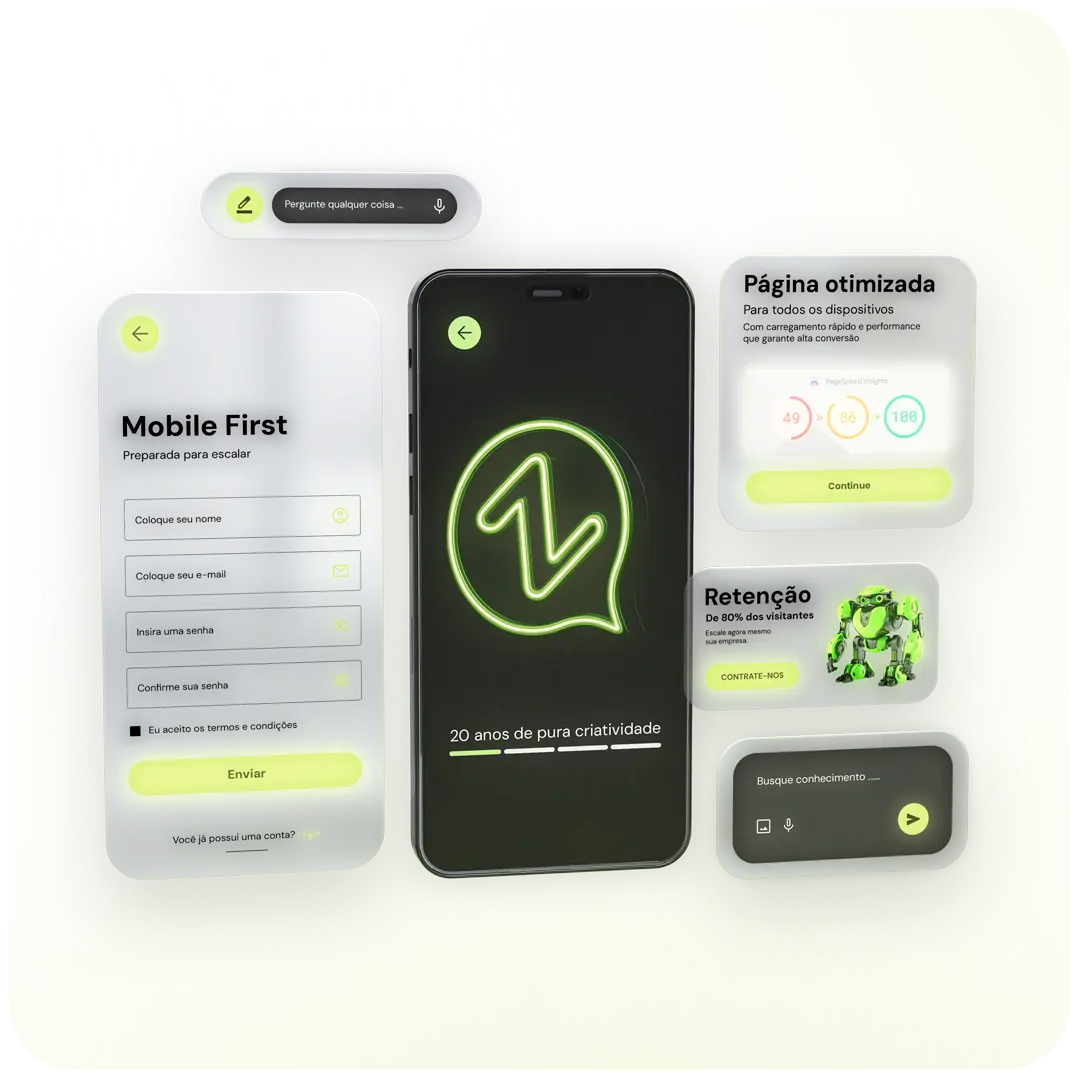 Sua página otimizada para todos os dispositivos, com carregamento rápido e performance que garante alta conversão mesmo para quem acessa pelo celular — como 80% dos seus visitantes.